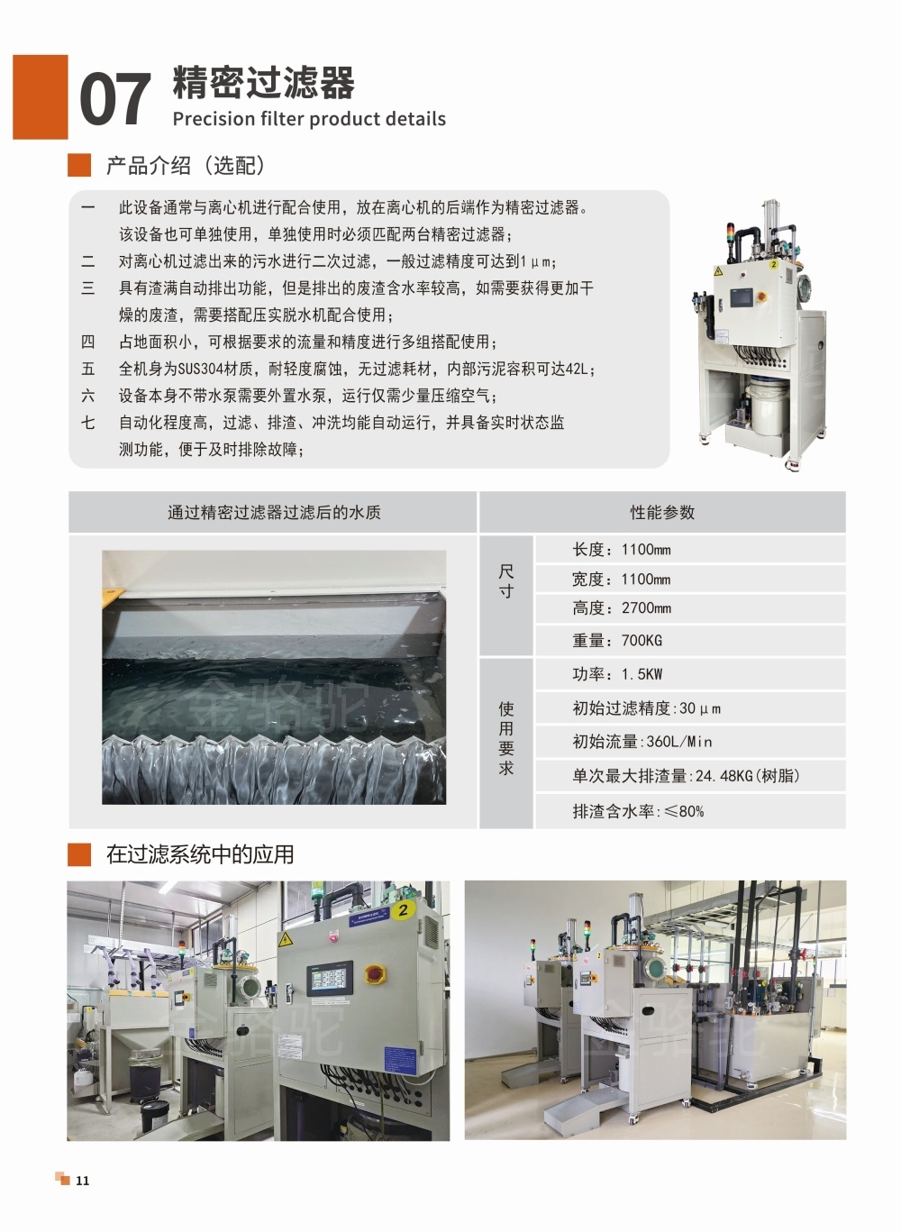 1、過(guò)濾精度高,可快速徹底將廢水中的粉塵分離并排出;