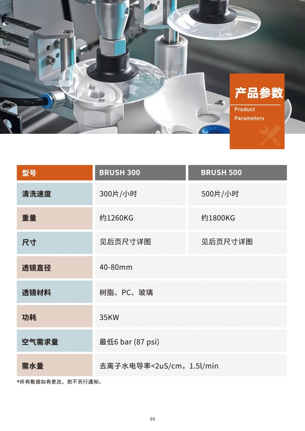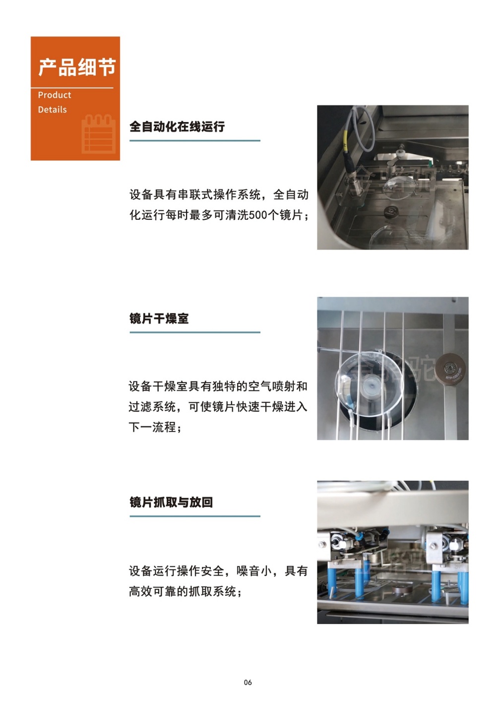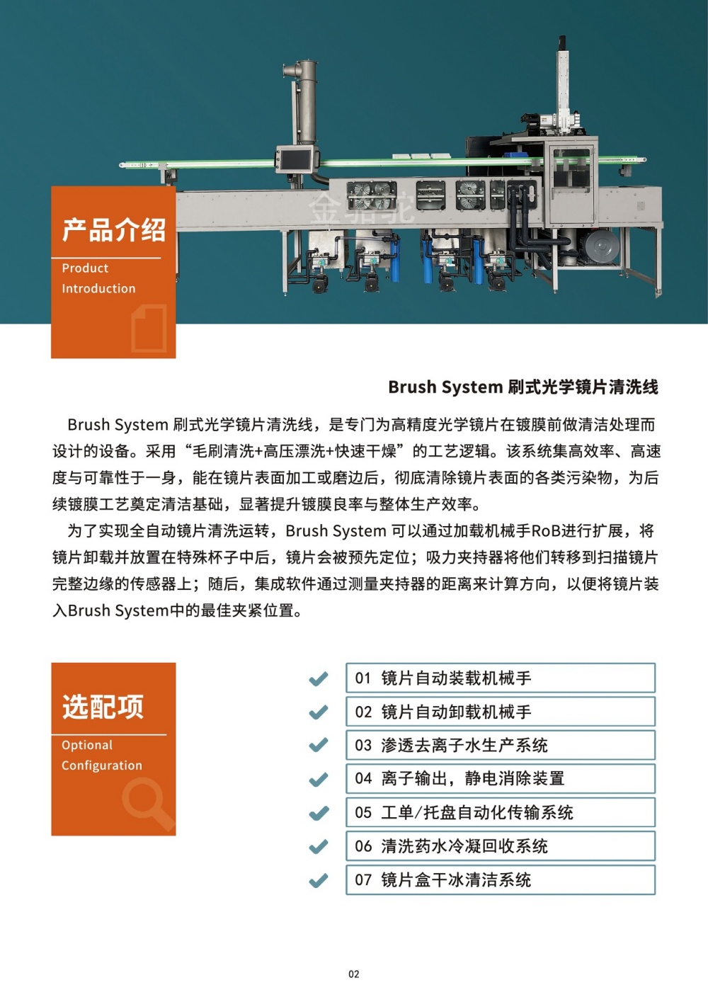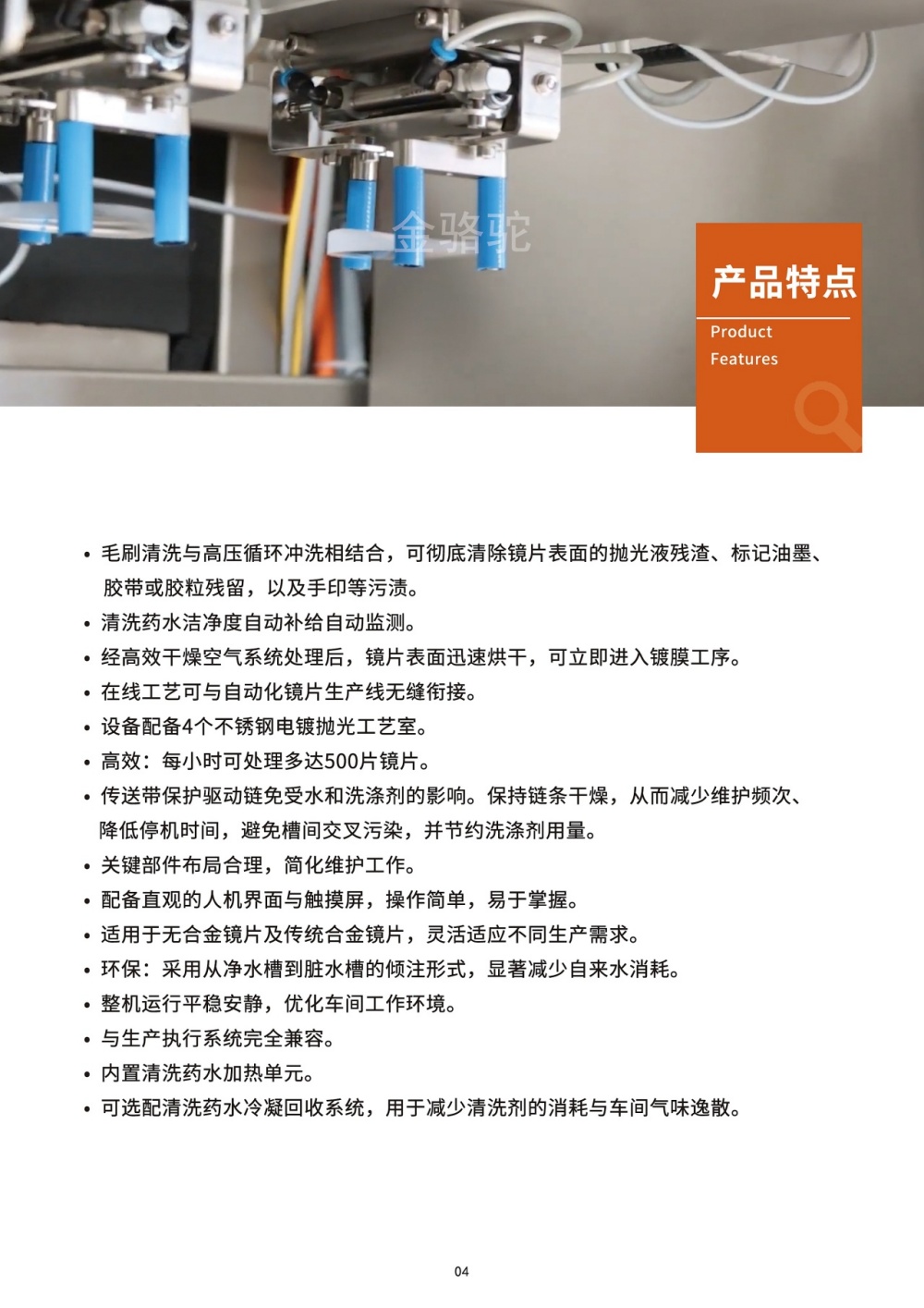 該設備是一個(gè)全自動(dòng)化刷式光學(xué)鏡片清洗系統,具備強大且高效的串聯(lián)式系統,可以清除化學(xué)品殘留、指紋等污染物,為后續涂層工藝準備好各種不同型號的鏡片。